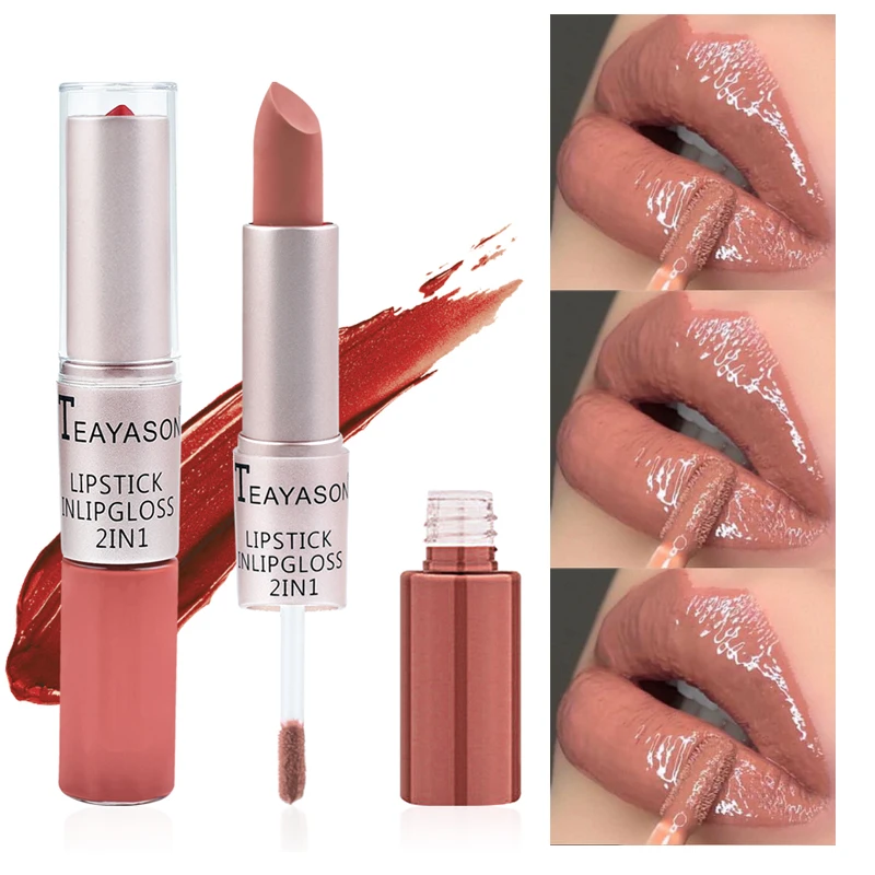 Нюдовый блеск для губ 2 в 1, 12 цветов, матовая водостойкая Сексуальная Красная Глянцевая стойкая бархатная Нелипкая помада, модный тинт для губ, макияж