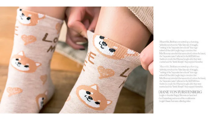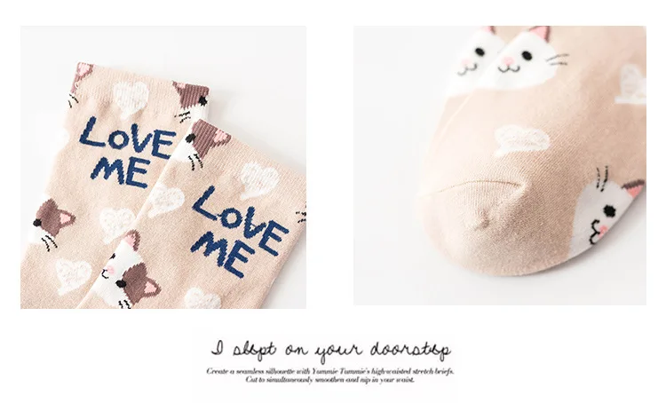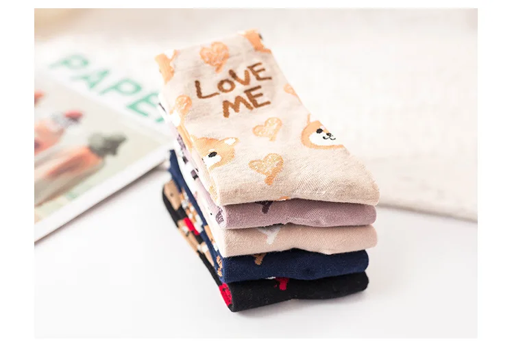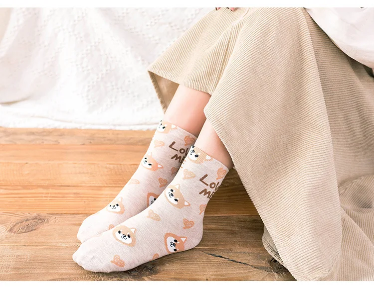 Носки женские хлопковые, в Корейском стиле, с принтом животных, весна-осень