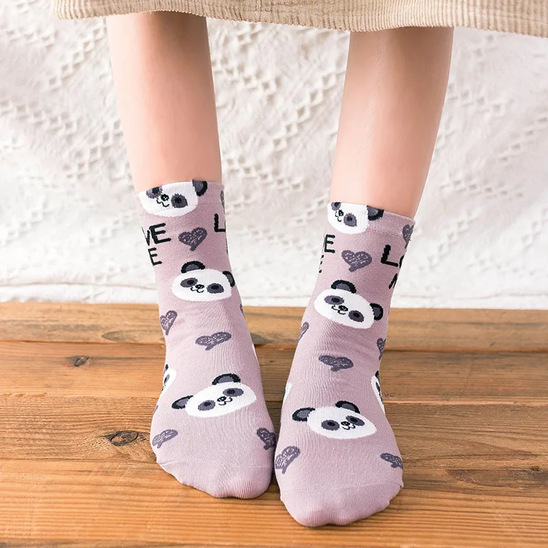 Носки женские хлопковые в стиле Харадзюку, с принтом панды и животных
