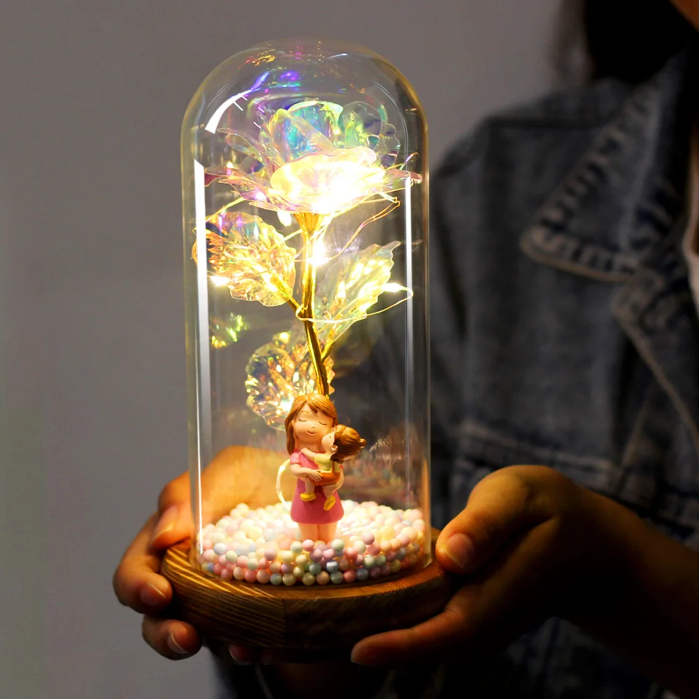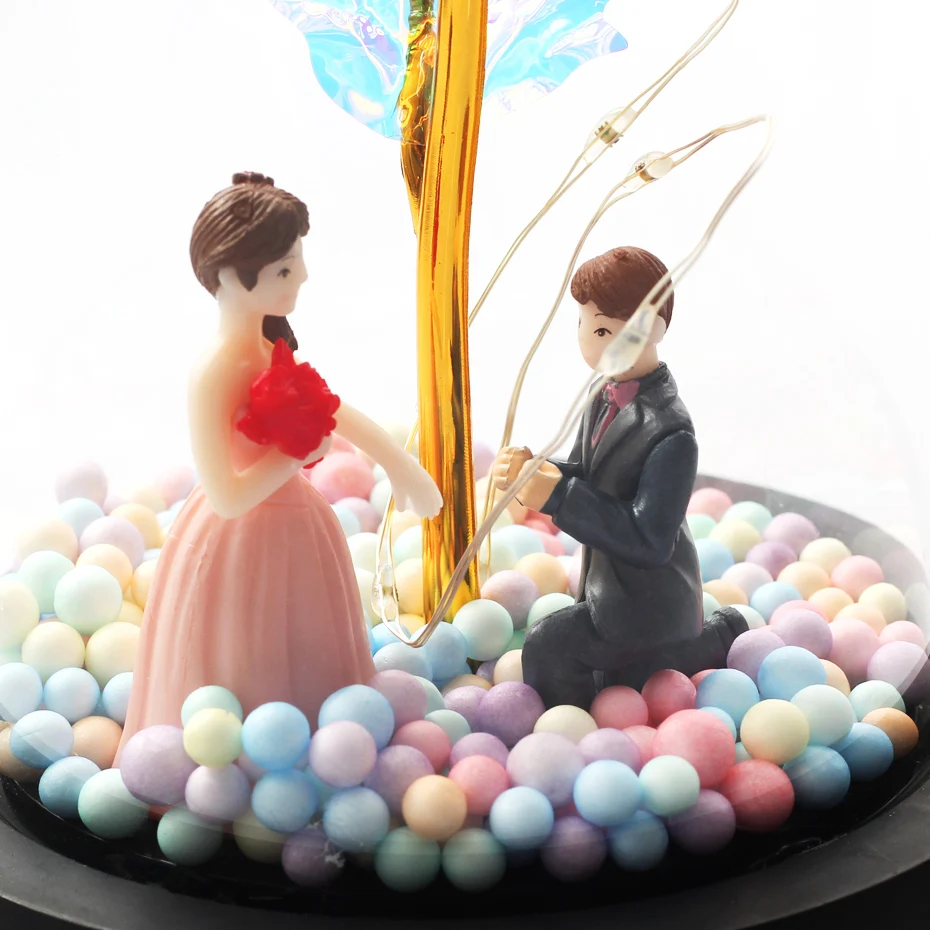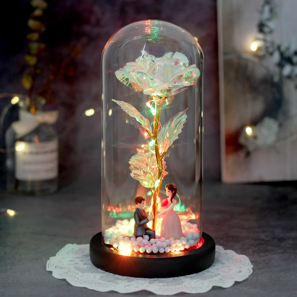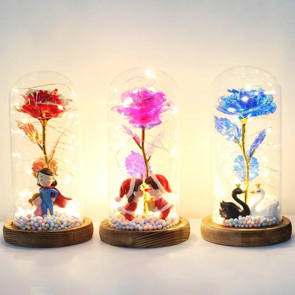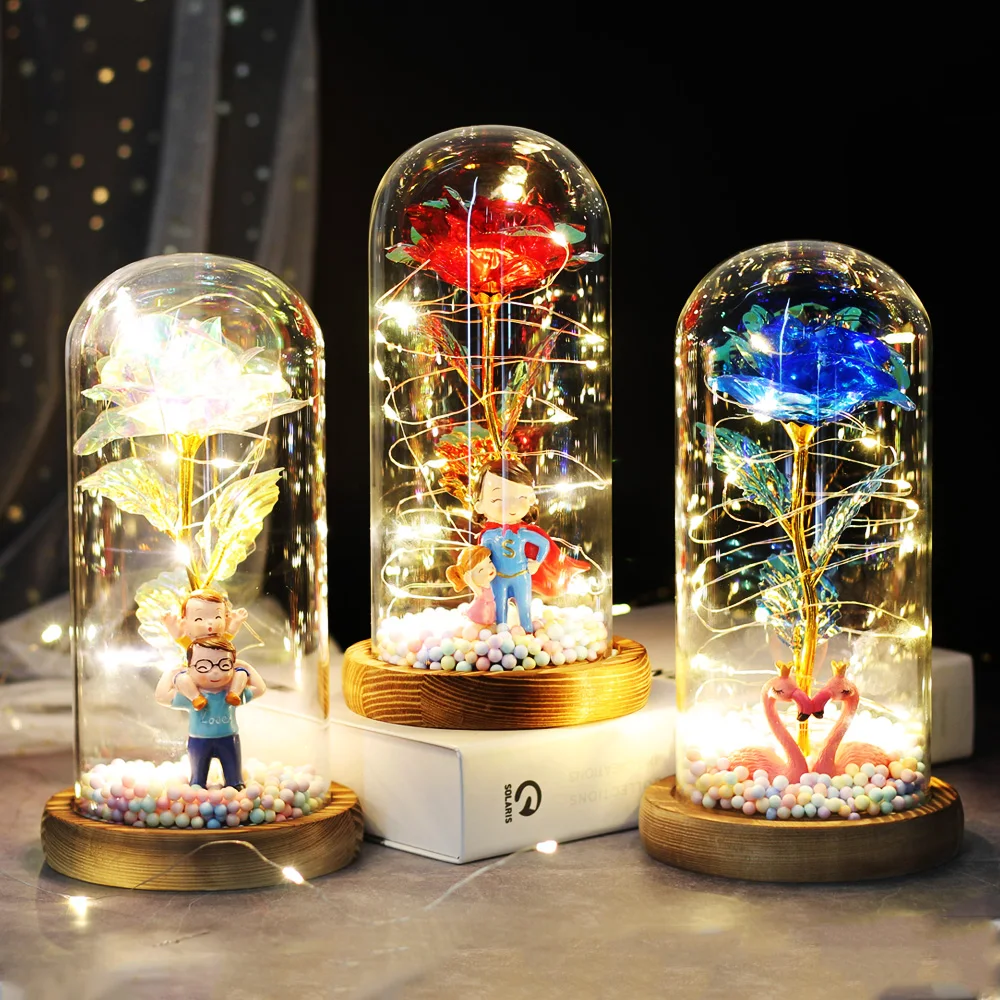 Украшения из искусственных цветов, подарок на день матери, Красавица и чудовище, домашний декор, свадьба, вечная галактика, роза с подсветкой в куполе
