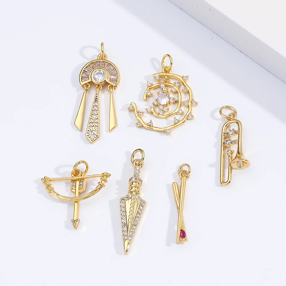 Геометрические Подвески, шармы, кубический циркон, Золотой Конус, Эрос, стрела, латунный инструмент, дизайнерские милые серьги, шармы, сделай сам, ожерелье, браслет