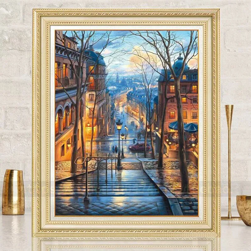 Алмазная картина "сделай сам" с изображением заката и города, красо...