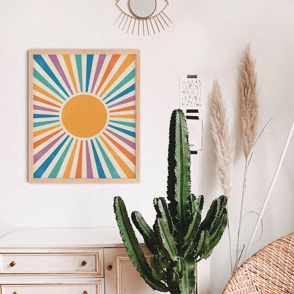 Абстрактный пейзаж, солнце, пейзаж, пейзаж на холсте в стиле бохо, картина для детской, настенные картины, плакаты для гостиной, домашний декор, без рамки