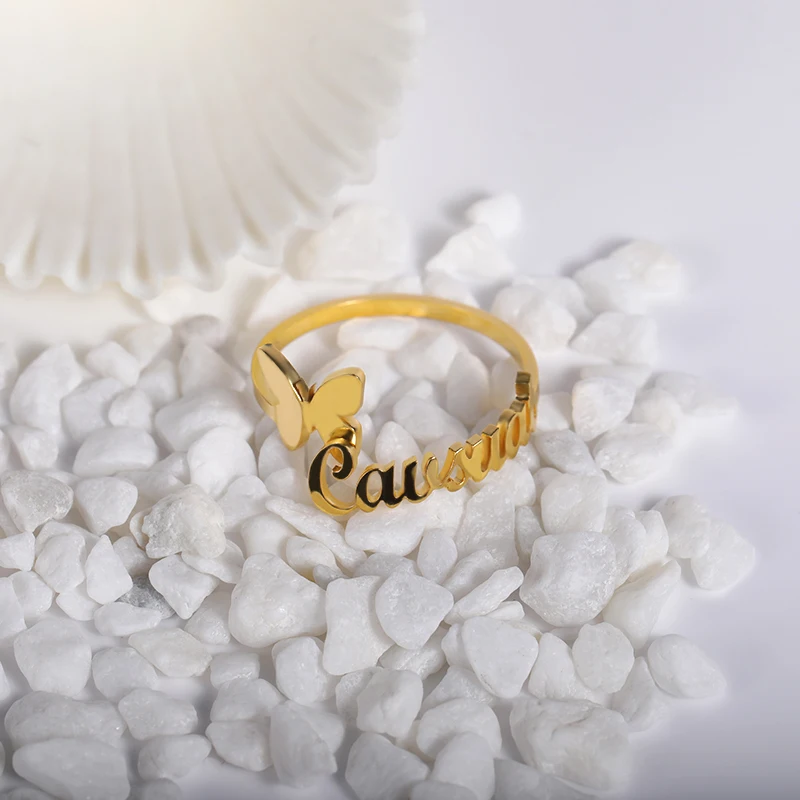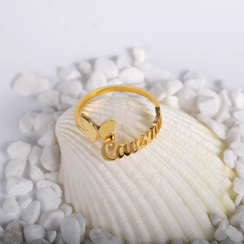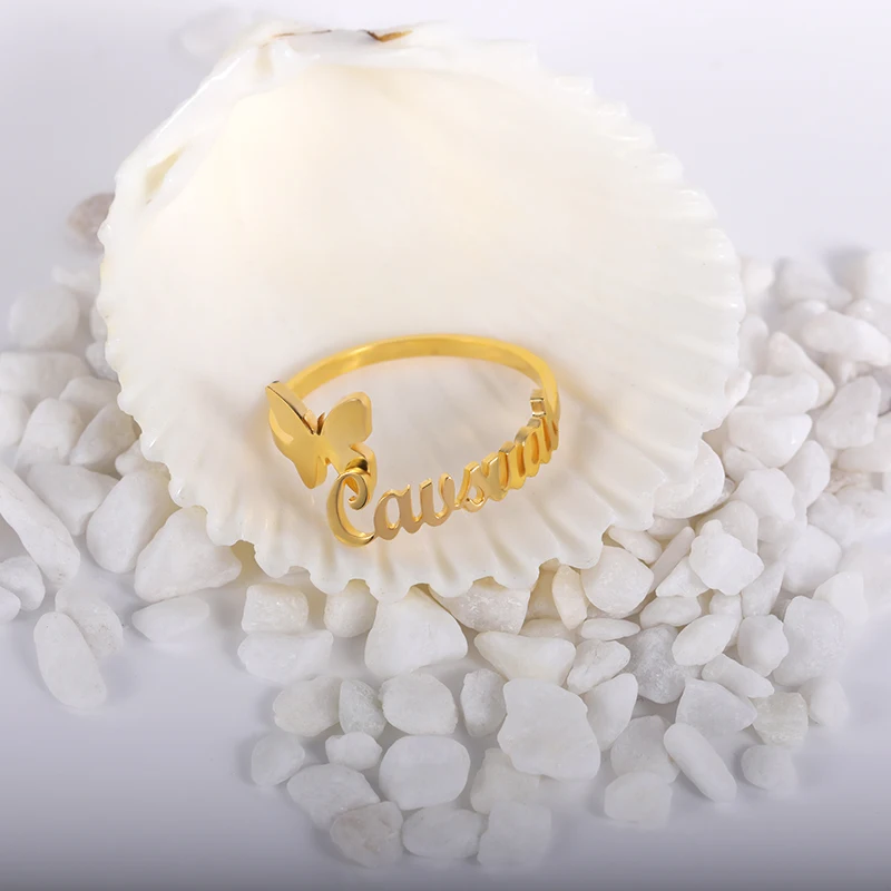 Кольца с именем бабочки на заказ для женщин, персонализированное регулируемое кольцо из нержавеющей стали, подарок другу, бижутерия для женщин