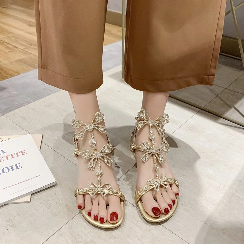 Сандалии женские со стразами, модные простые и удобные босоножки с пряжкой, повседневная обувь, лето