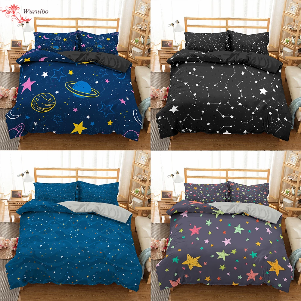 Комплект постельного белья Звездный односпальный двуспальный королевский комплект из 23 предметов с ночным небом 90135150 постельное белье Детский комплект с пододеяльником темно-синее постельное белье с галактикой
