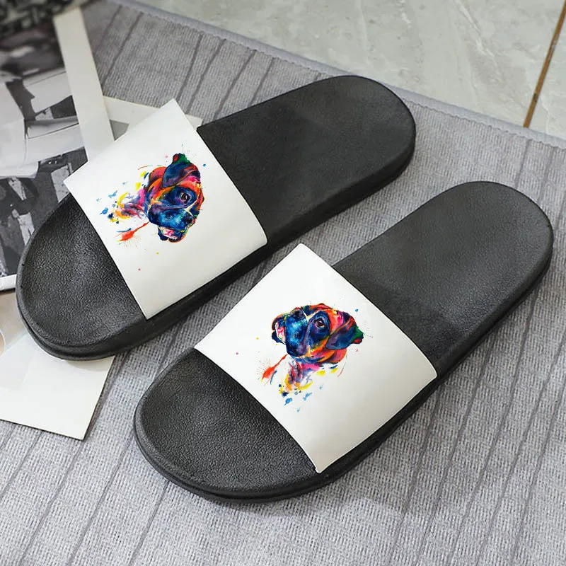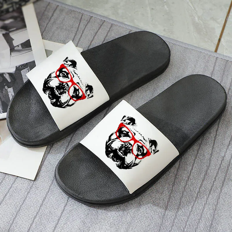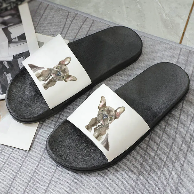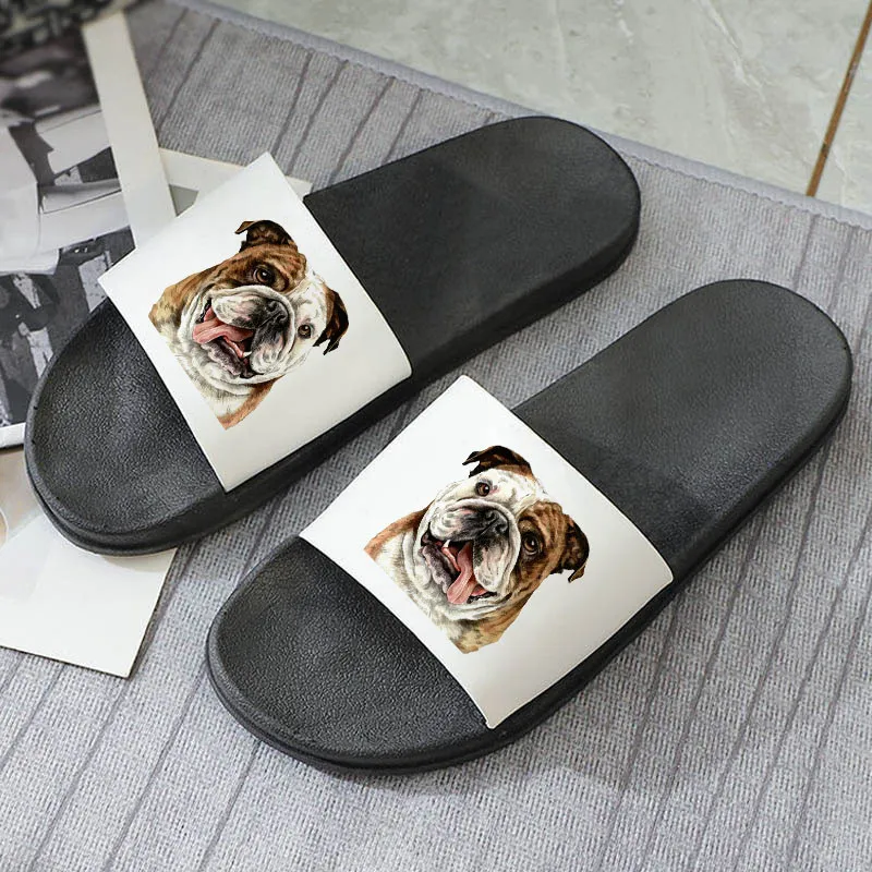 Шлепанцы женские с рисунком бульдога, домашние сланцы, мультяшный р...