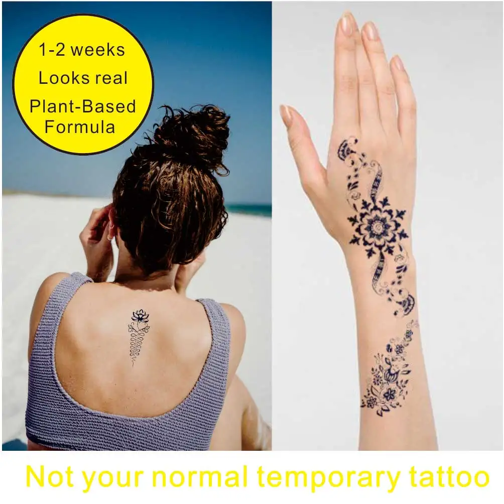 Это Полуперманентная искусственная татуировка хной. Особенности: 1) Это новые полуперманентные татуировки. Срок службы 1-2 недели. 2) они водонепроницаемые. А также они очень естественные. У них разные цвета на разной коже. 3) 1 шт./apck. Пожалуйста, обратите внимание, что эти татуировки сначала выглядят легкими или даже чёткими, но примерно через 24 часа они потемнеют и наконец продемонстрируют красивый цвет. Как они работают?
