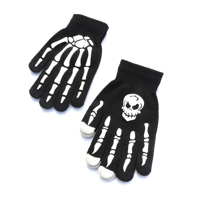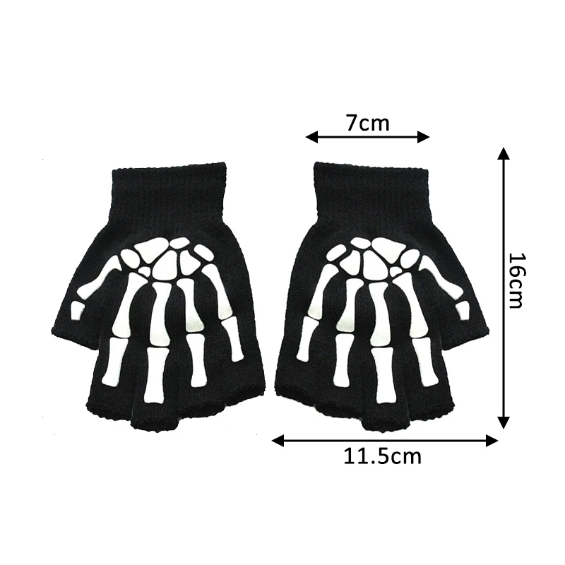 Полуперчатки с ужасом, черепом, гримасом, когтями, скелетом, светящиеся перчатки для Хэллоуина, теплые зимние перчатки без пальцев, новинка, варежки