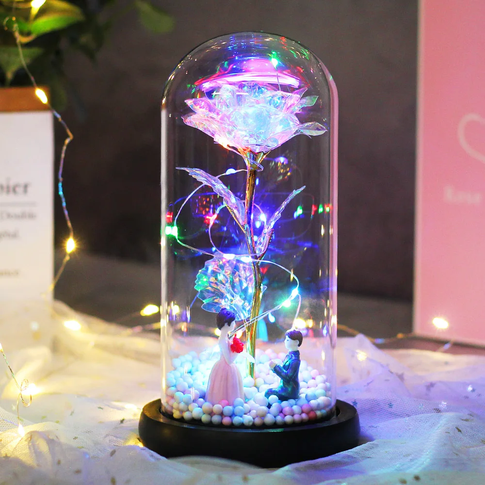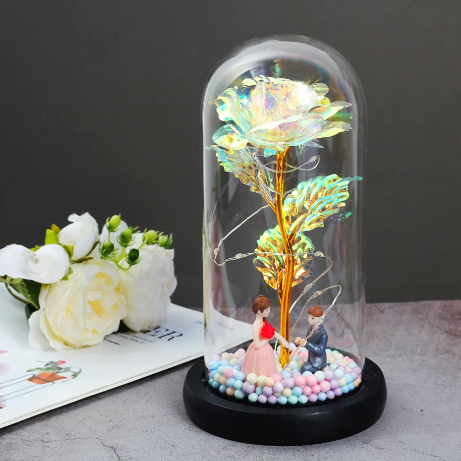 Рождественский подарок Галактическая роза искусственный цветок Красавица и Чудовище Роза в стеклянном куполе светодиодное украшение день Святого Валентина Новогодний подарок