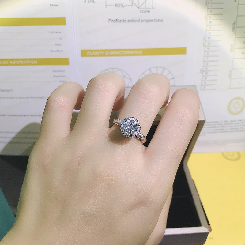 Кольцо из муассанита 1 карат с твердым серебром 925 пробы VVS1, отл...
