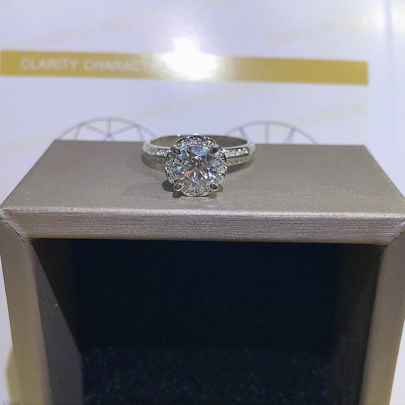 Кольцо с муассанитом, серебро 100% пробы, 1 карат, 2 карата, D, VVS1