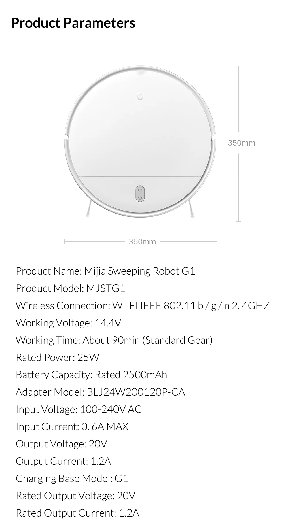3. Различная мощность всасывания. Робот для уборки Mijia G1 составляет 2200 па, а робот для уборки Mijia 1C-2500 па.