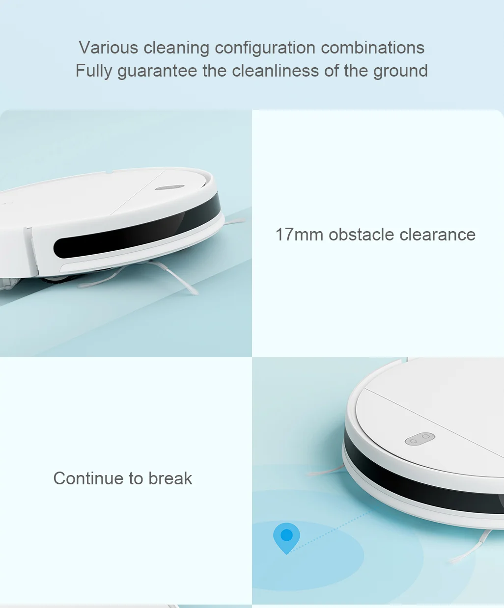 Различные комбинации конфигурации очистки. Комплексная защита семейной гигиены. Возможность зазора препятствий 17 мм, более высокий охват очистки. Продолжить сканирование в точке останова, Автоматическая подзарядка.