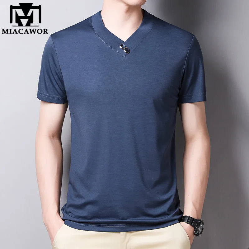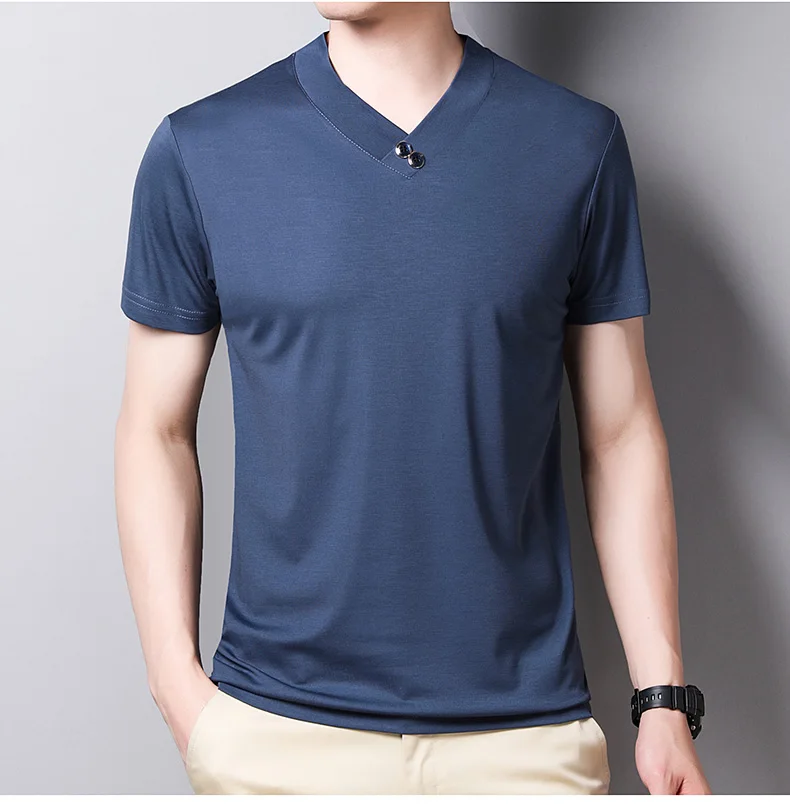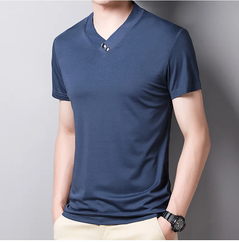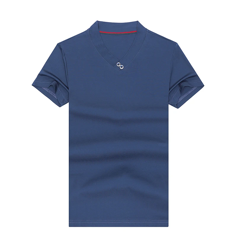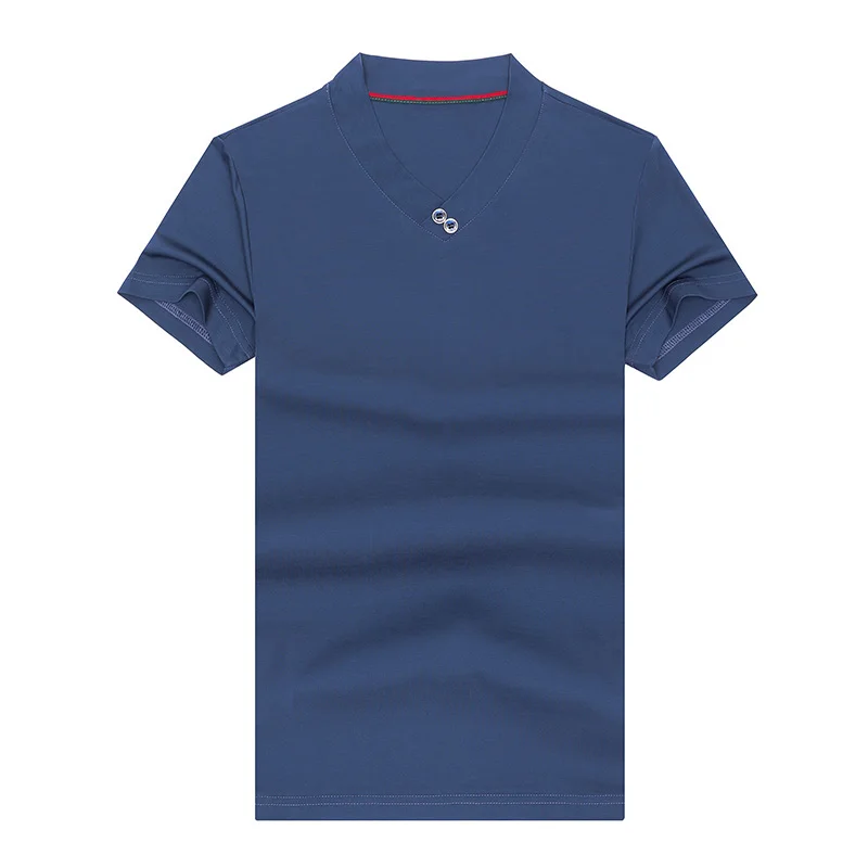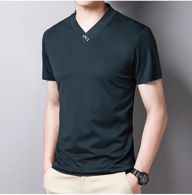 Футболка мужская с коротким рукавом, хлопковая Повседневная рубашка, приталенный силуэт, с V-образным вырезом, однотонная, T1016, на лето