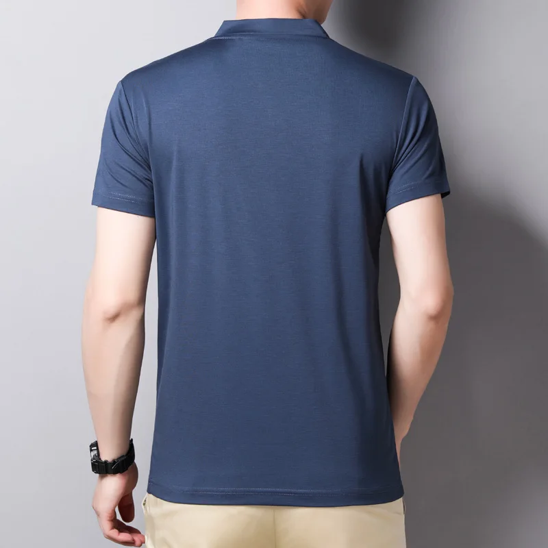 Рубашка-поло мужская однотонная, Классическая шелковая хлопковая ру...