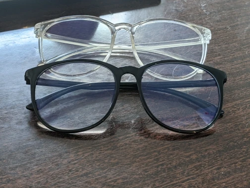 Брала для фото реквизита. Размер отлично подошел моему крупному лицу. Но за копьютером я работать не могу, вроде антибликовые, но на них отражается все и это мешает смотреть в них... Черные стильные, а розовые не понравились, напомнили очки моей бабушки)))