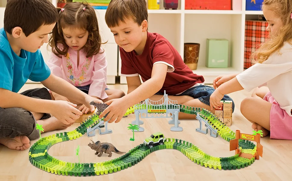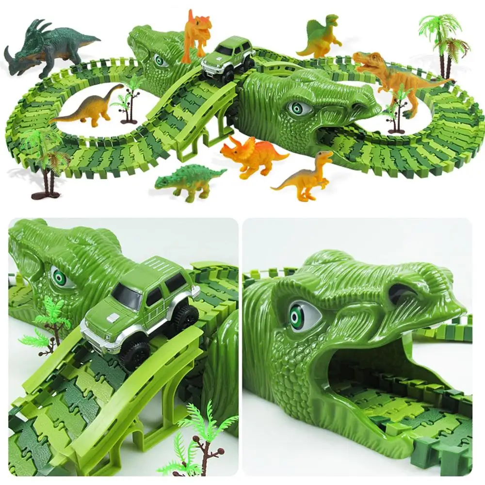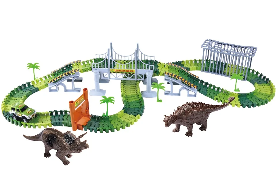 153 шт.компл. детская игрушка динозавр Электрический рельсовый автомобиль сделай сам сменный сборный строительный блок треки над динозавром Хилл игрушка подарок
