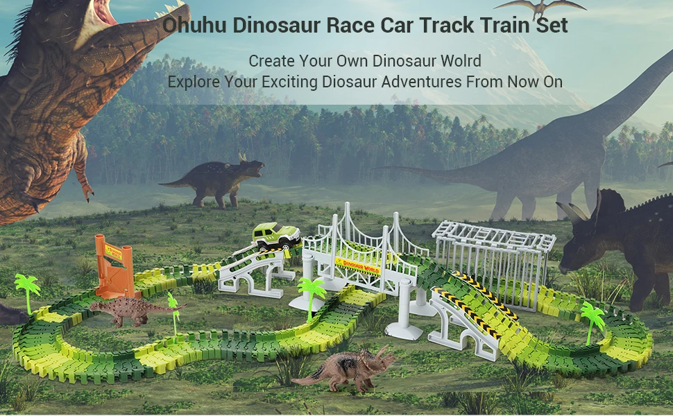 Пробуждите их первоклассные инстинкты с этим роскошным треком динозавра. Веселье не останавливается, так как дети устраивают гоночные трассы в различных конфигурациях с пандусами, деревьями, мостом и воротами, чтобы безопасно перемещать автомобили через и поверх.Набор из 156 предметов включает в себя 144 гибких трека, 2 игрушечных внедорожника, 2 фигурки динозавра, 2 пандуса, мост, ворота и 4 пластиковых дерева. Дети тренируют свое воображение и учатся решать проблемы, когда они создают удивительные миры динозавров в помещении или на открытом воздухе.Воспламеняйте свое любопытство о мире и о том, как он раньше рассматривал реалистичные фигуры T-Rex и Triceratops. Девочки и мальчики могут представить, что эти вымершие бегемоты наносят ущерб проходящим мимо автомобилям и причиняют хаос на дорожке с динозаврами на дереве.Веселье для всех или даже только для 1, наш гоночный трек с динозавром включает в себя 2 моторизованных автомобиля, каждый из которых требует 1 батарею АА (не входит в комплект). Дети приобретают ценные навыки общения и учатся самостоятельно развлекать этот набор игрушек динозавра для мальчиков и девочек 3 лет.Прочный и нетоксичный пластмассовый игрушечный динозавр playset является экологически чистым, без BPA и безопасным для детей в возрасте 3 лет и старше. Гоночный трек динозавра прошел высокие стандарты безопасности игрушек США ASTM F 963 и Европейского EN71.