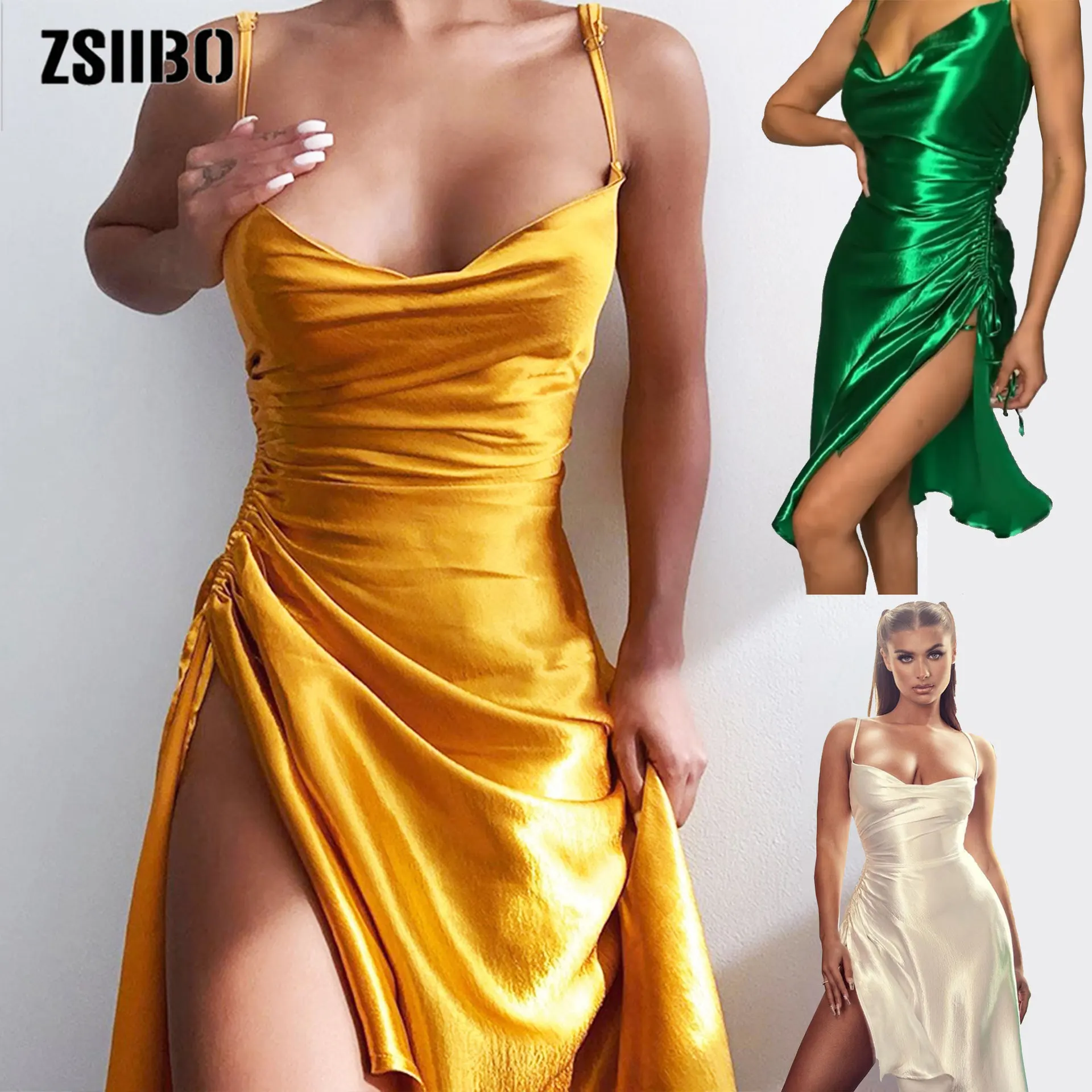 Платье WLLWLP женское атласное с высоким разрезом, модная Асимметри...