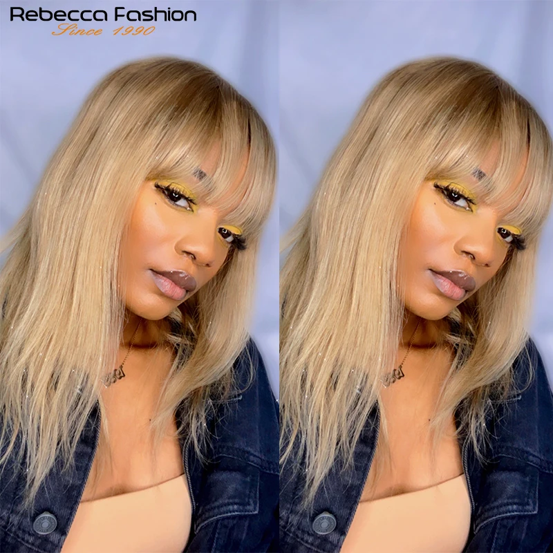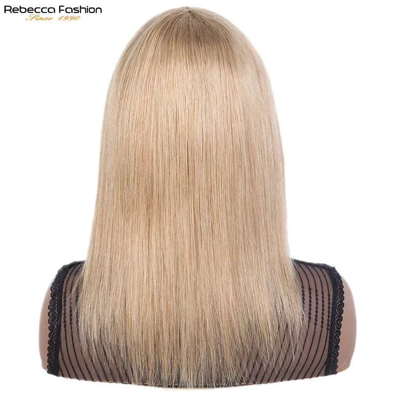Парик Rebecca прямой блонд с челкой, бразильские волосы Remy, прямые блонд человеческие волосы для женщин, короткие волосы Hiar, дешевый парик для косплея