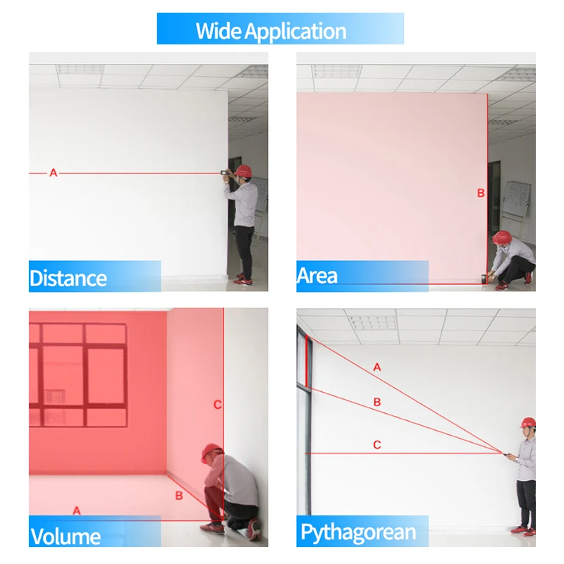 1. Параметры единицы измерения: m/ft/in2. 99 единиц хранения данных3. Высокая точность как 2,0 мм и широкий измерения: (50 м/70 м/100 м/120 м для опционально)4. Установите передний/задний ориентир.5. ЖК-дисплей с подсветкой.6. Один воздушный пузырь