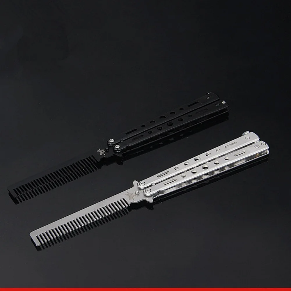 Складная расческа из нержавеющей стали тренировочный нож-бабочка расческа для бороды и щетки для усов инструмент для укладки парикмахерских