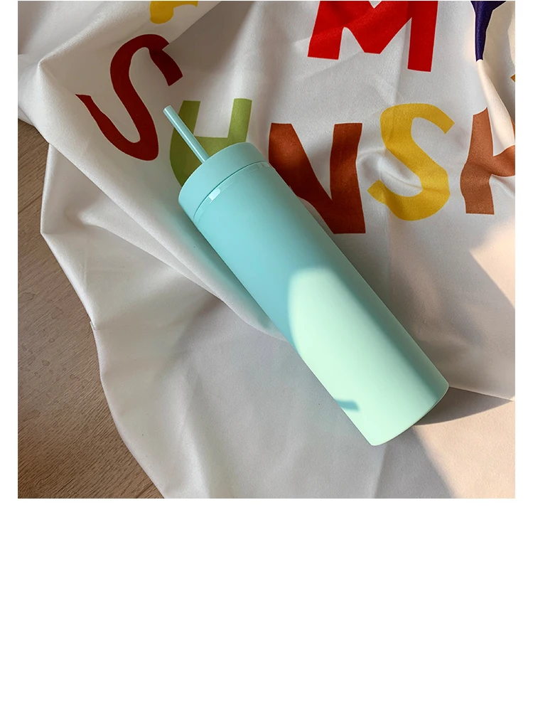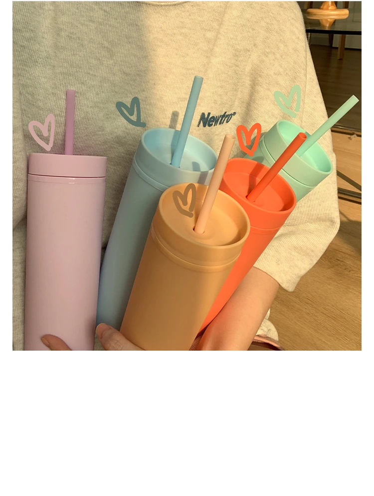 Креативная соломенная чашка, цветная двухслойная пластиковая матовая чашка для воды, чашка для кофе, сока, соломенная кружка, простая Милая портативная чашка с соломинкой