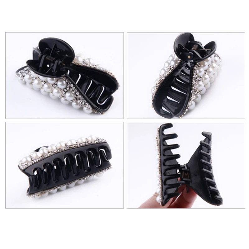 Заколка-краб для волос женская, с жемчугом и кристаллами