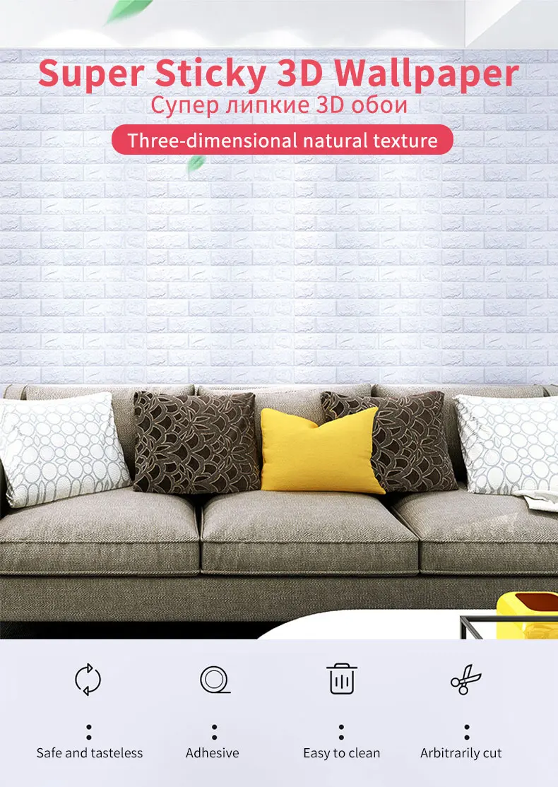 Самоклеящиеся обои из пены, водонепроницаемые 3D-панели с рисунком кирпича для гостиной, спальни, детской бумаги с рисунком кирпича, домашний декор, 12 шт.