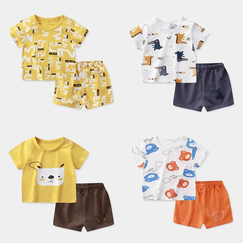 Одежда для малышей детский летний костюм От 6 месяцев до 4 лет Детский комплект с короткими рукавами для девочек, футболка из 100 хлопка Одежда для мальчиков