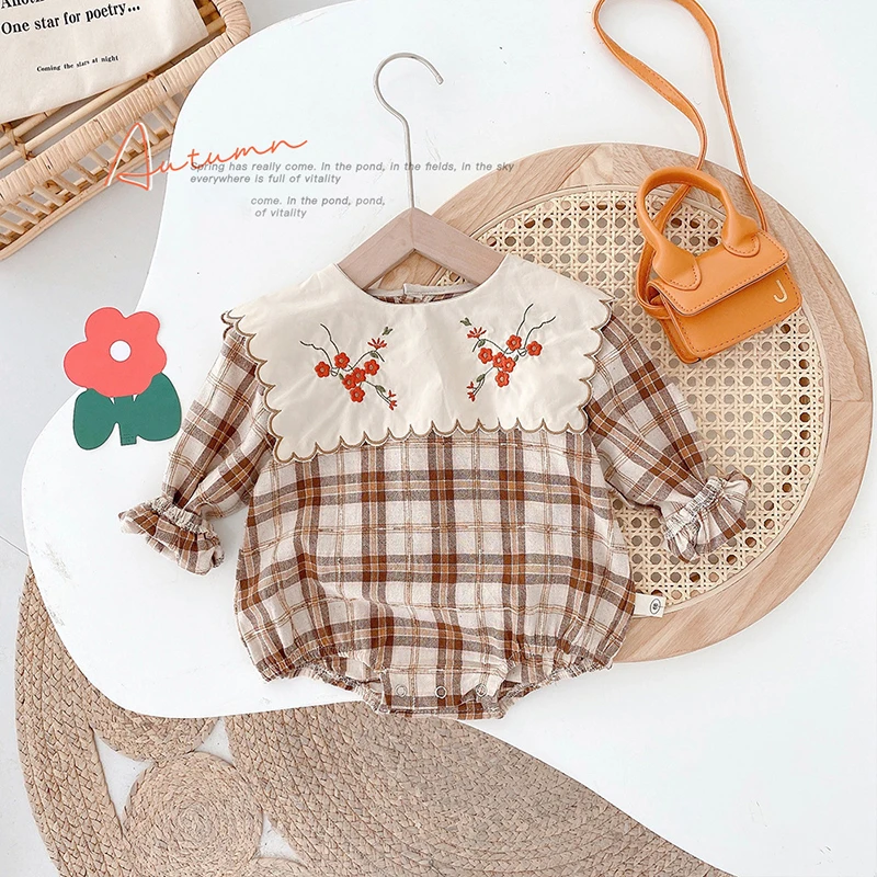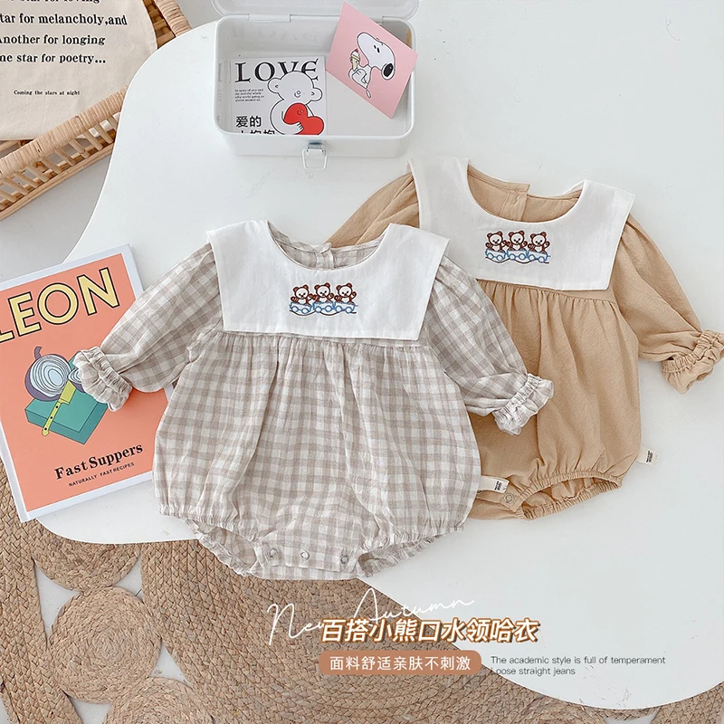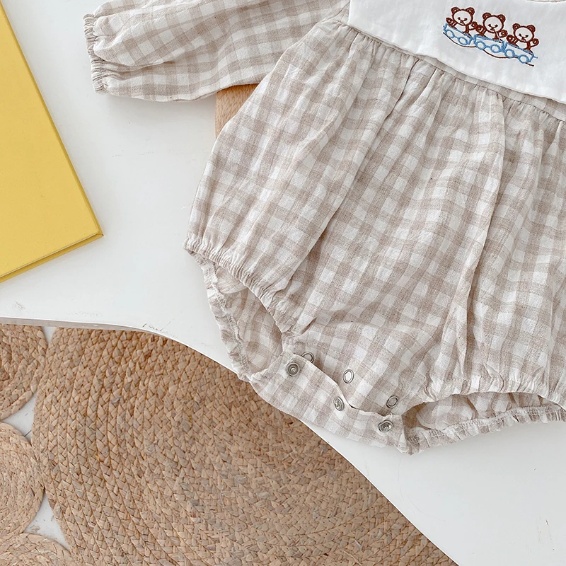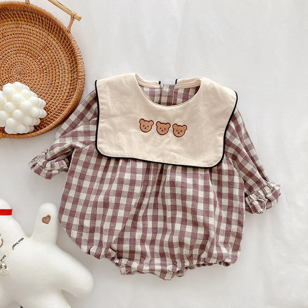 SMGSLIBНовинка 2021 года; Боди с длинным рукавом и принтом медведя для маленьких девочек; Детский клетчатый комбинезон; Одежда для маленьких девочек