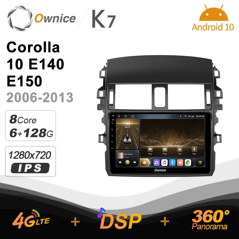 Автомагнитола Ownice K7, Мультимедиа система на Android 10,0, 6 ГБ + 128 ГБ, для Toyota Corolla 10, E140, E150, 2006-2013, Радио, блок 360, 4G, LTE