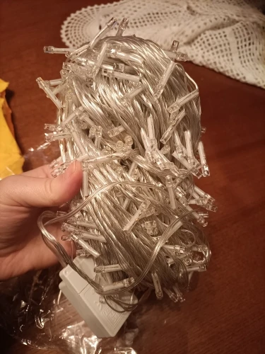 Все пришло в целости. Упаковка простой конверт, но ничего не разбилось. Горит ярко, режимы переключаются. Немного присутствует запах, как и других дешёвых товарах. Идеально подходит для белых и блестящих ёлочек!!! Доставка быстрая. Трек номер отслеживался. Продавца и гирлянды рекомендую!