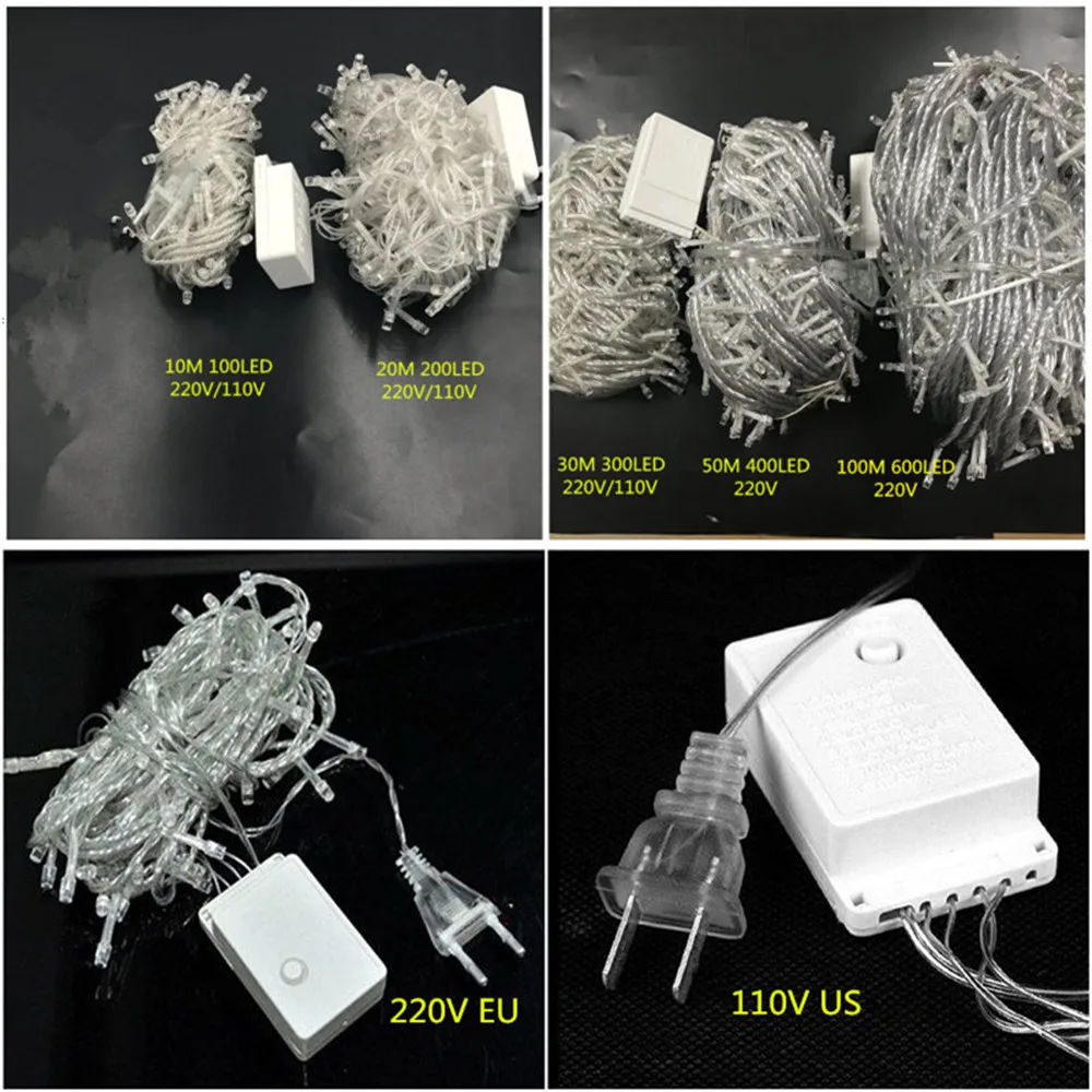 Уличная Рождественская светодиодная гирлянсветильник s 100 м, 50 м, 30 м, 20 м, 10 м, 5 м, световые украшения, волшесветильник свет, празднисветильник свет, s светильник ящаяся гирлянда на дерево