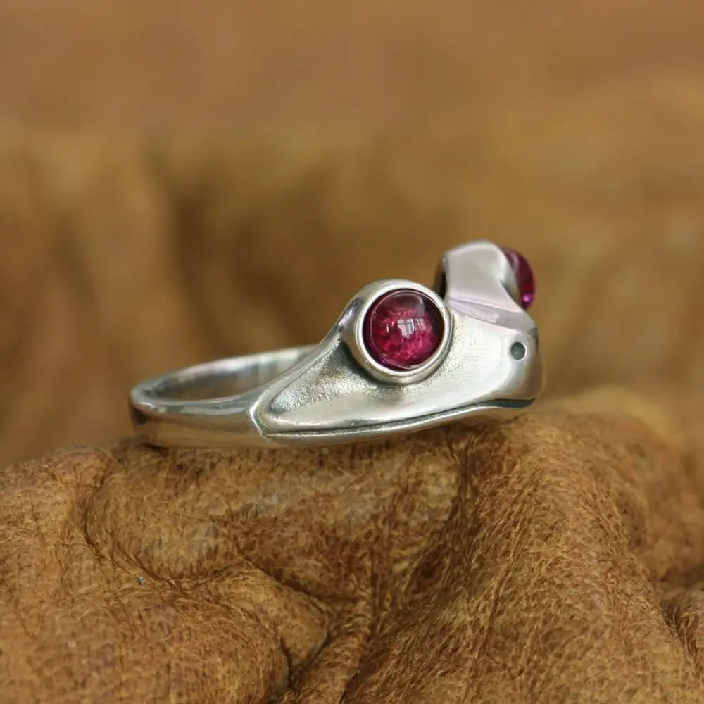 925 пробы Подвески в виде лягушки кольцо прекрасный детали ярко-красный CZ глаз кольцо в форме жабы TA266 нам Размеры 5 10