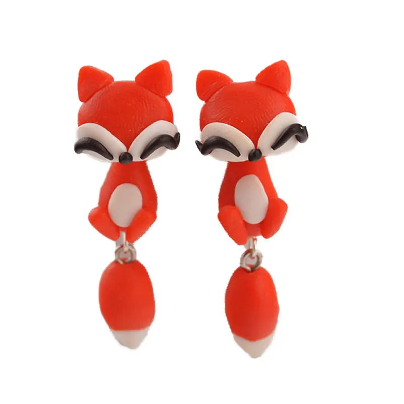 3D серьги-гвоздики с животными ручной работы для женщин, полимерная глина, милый мультфильм, ювелирное изделие, прекрасный цветок, лиса, стежок, Y2K, эстетические аксессуары
