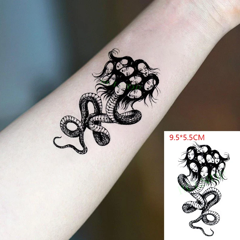 Водостойкая Временная тату-наклейка, девять голов, красота, змея, боди-арт, флэш-тату, искусственная тату для женщин и мужчин