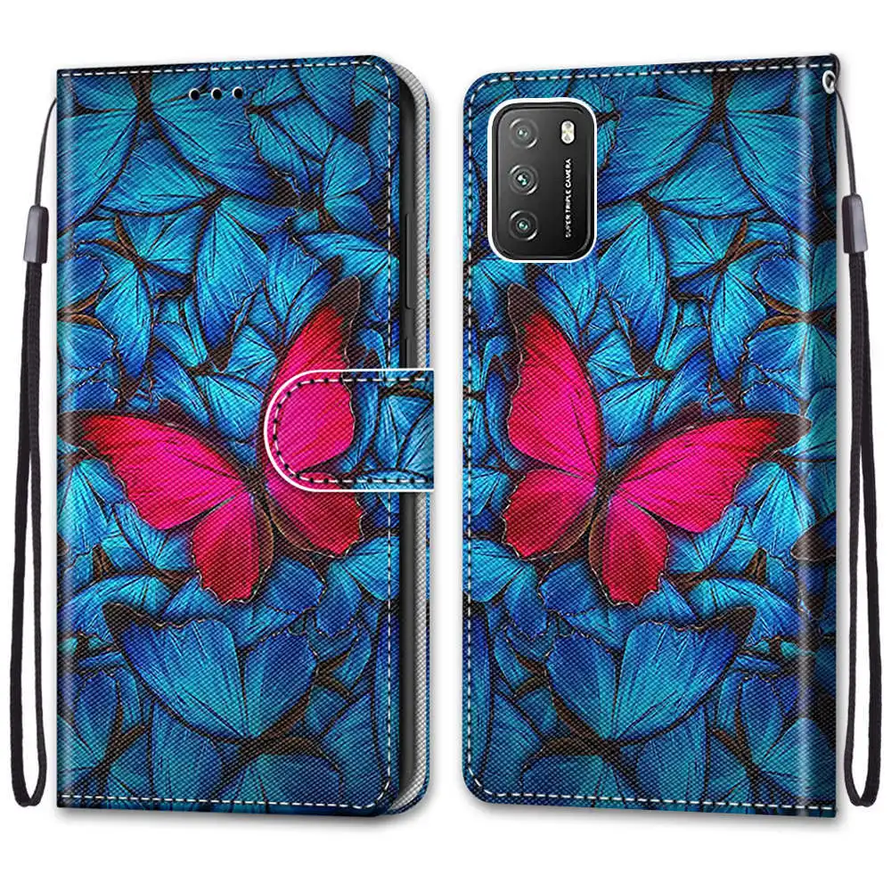 Кожаный чехол-книжка для Xiaomi POCO X3 NFC Pro M3 F3, с изображением цветов, милого кота, кошелек, держатель для карт, подставка, чехол-книжка с бабочкой