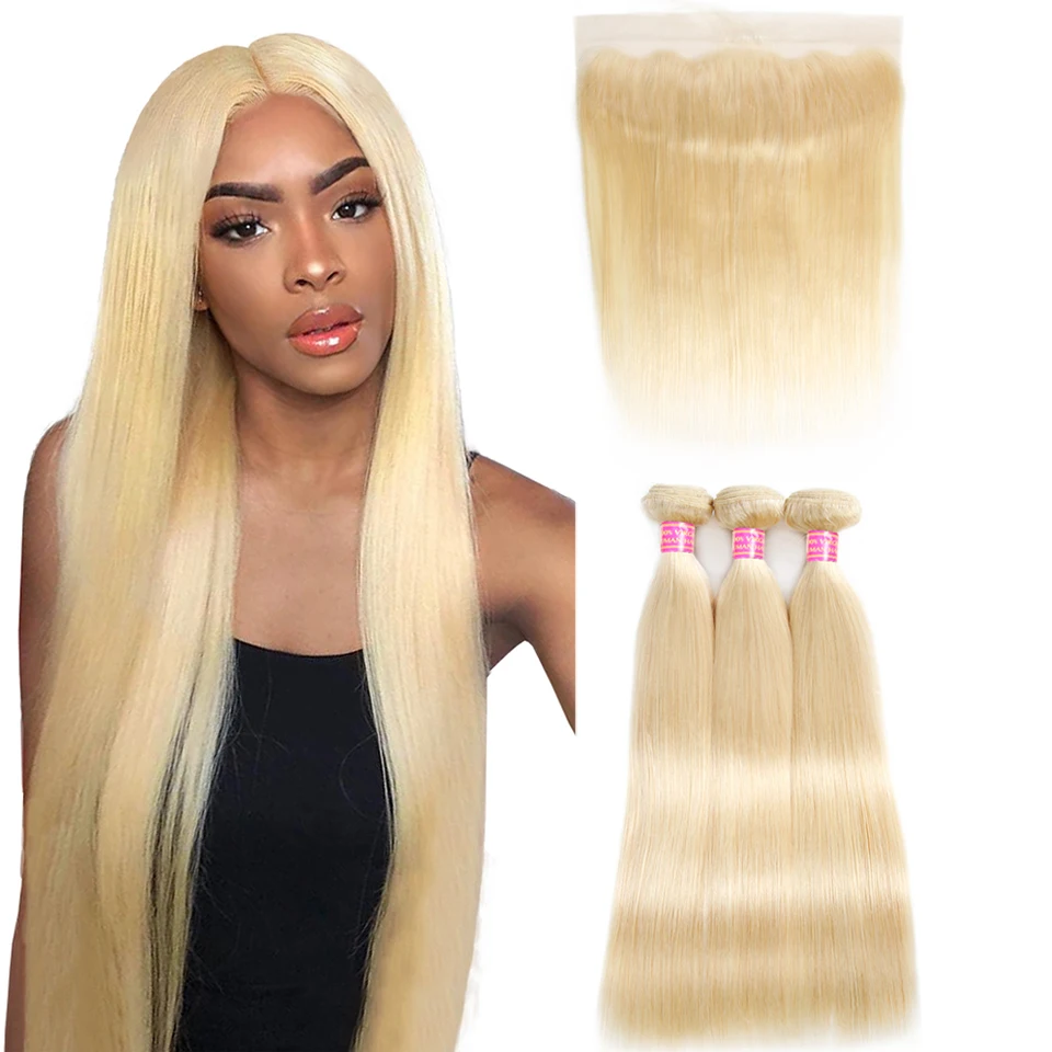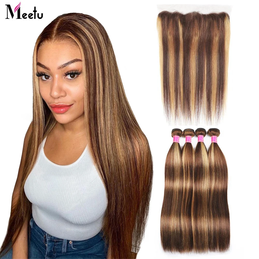 Выделите пряди с фронтальной Мёд блондинка кости прямые волосы пряди с фронтальной бразильские 13x4 кружева фронтальные с пряди