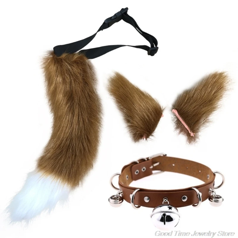 Комплект из клипс и хвоста с лисьими кошачьими ушками, ошейник с за...
