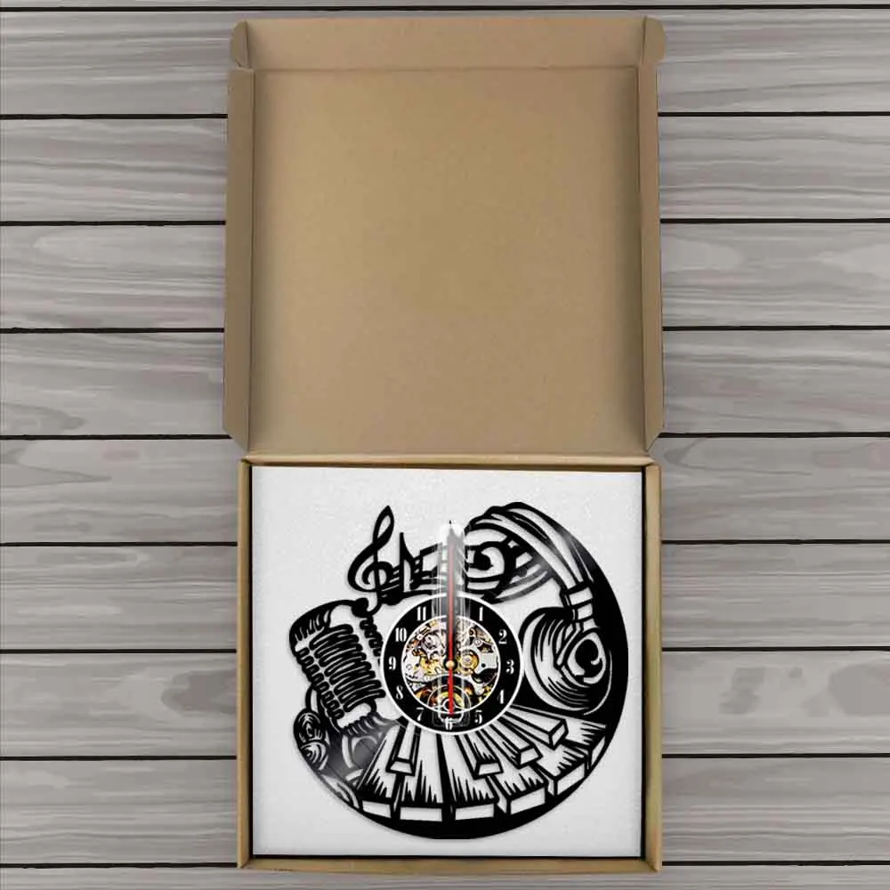Настенные часы с микрофоном, виниловая запись, музыкальные заметки в стиле рок-н-ролл, пианино, настенные часы с микрофоном, украшение для головы