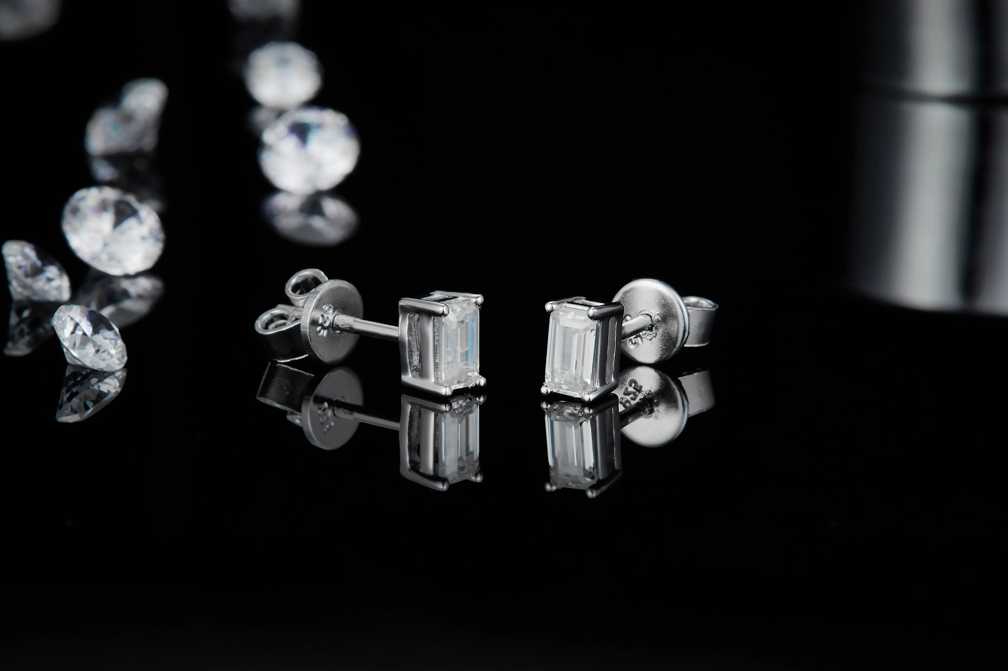 Серьги женские из белого золота с мусанитом, 6 Зубцов, 5 мм, 6 мм