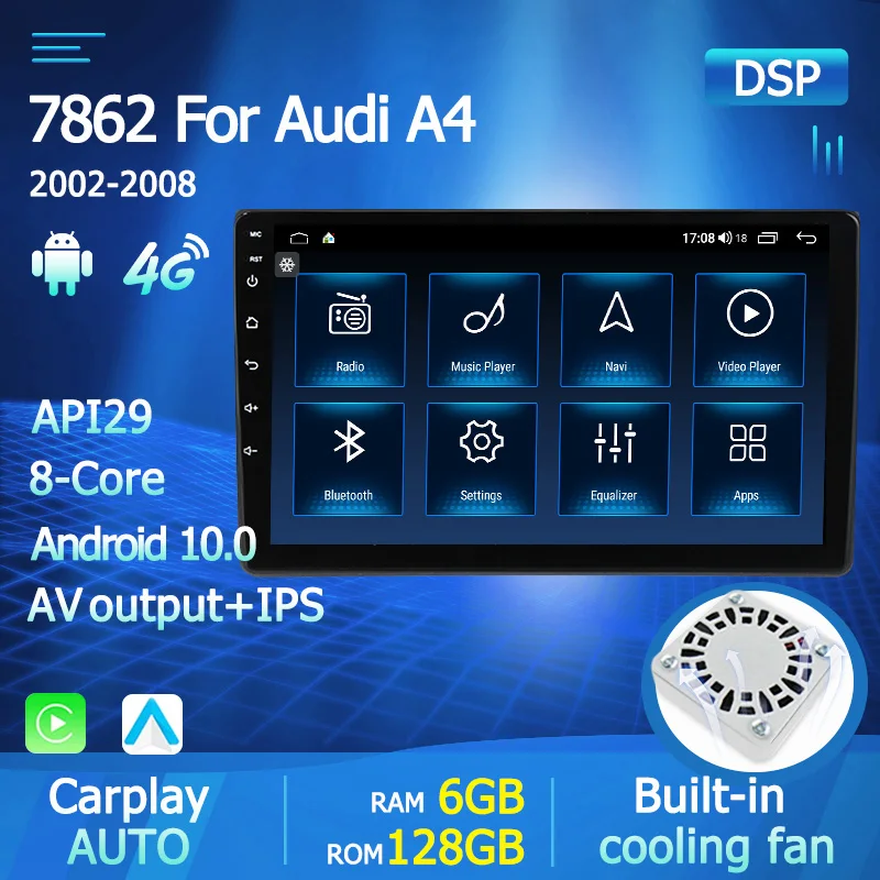 Автомобильный радиоприемник Android 10 Octa Core 7862 для Audi A4 S4 RS4 B6 2000-2009 мультимедийный видео DVD плеер с Canbus Fan RDS DSP USB