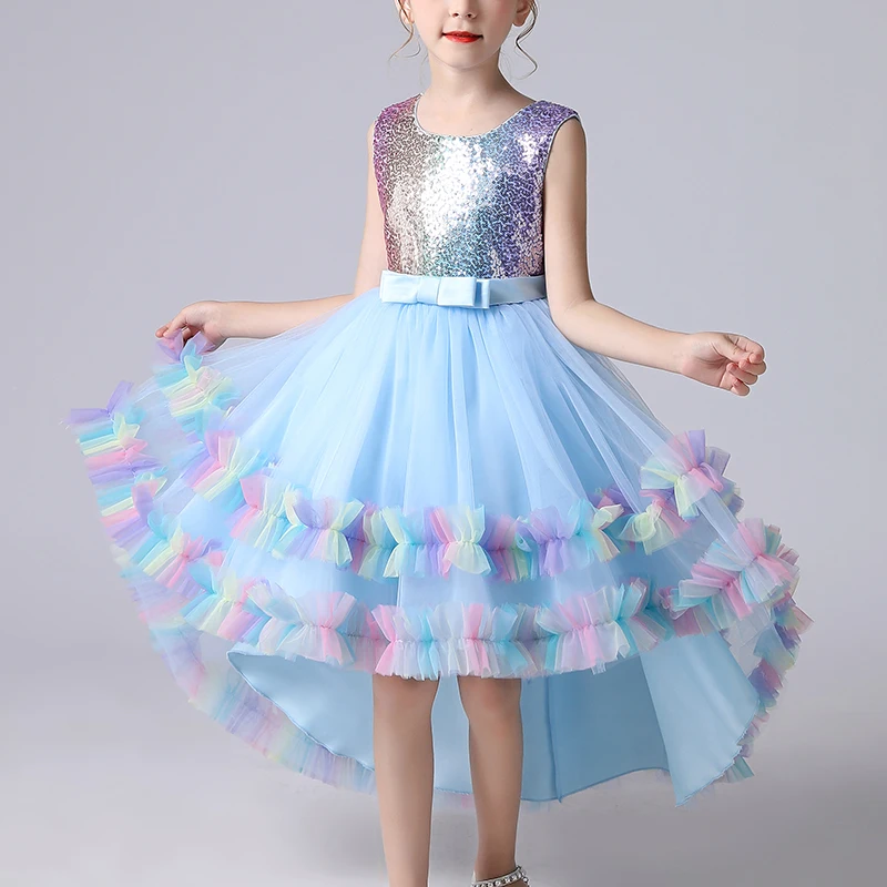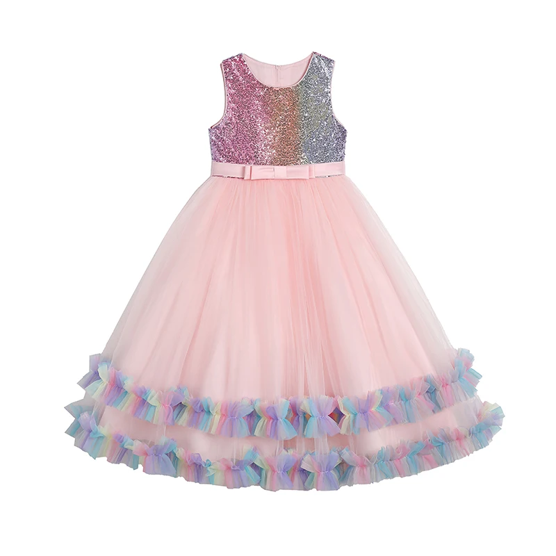 Вечерние платья для девочек, свадебное платье, платье с цветочной вышивкой, летняя детская сетчатая пачка с блестками для принцессы