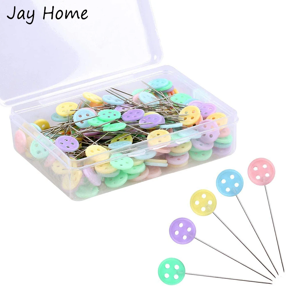 100 шт кнопки головы прямой штифт Швейные штифты для ткани стеганые многоцветные плоские головки прямые штифты DIY Ремесло Швейные аксессуары