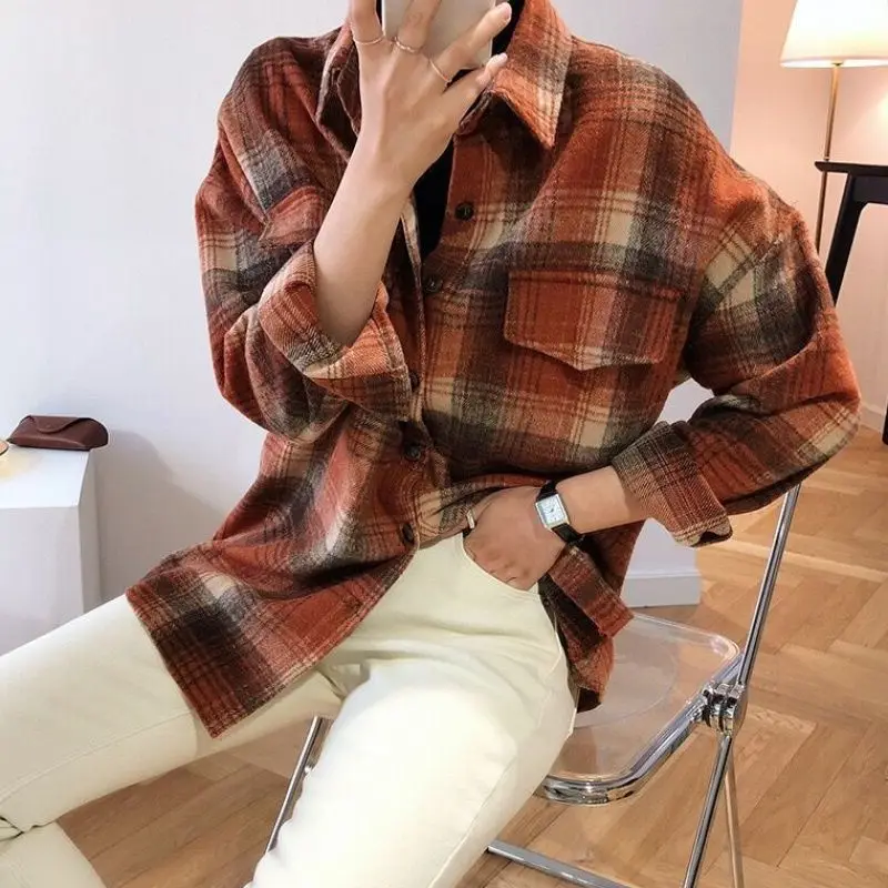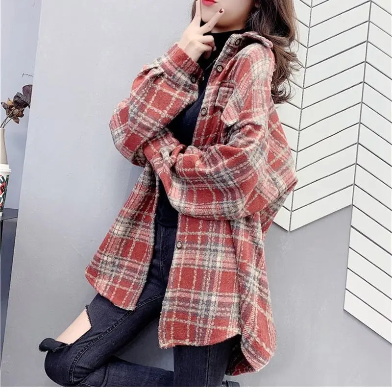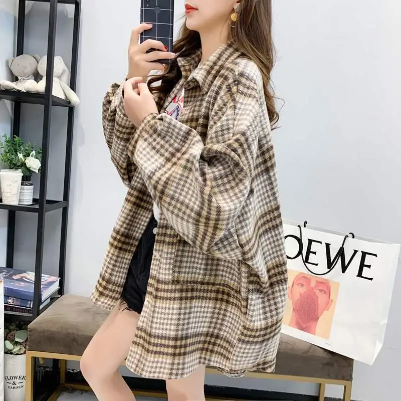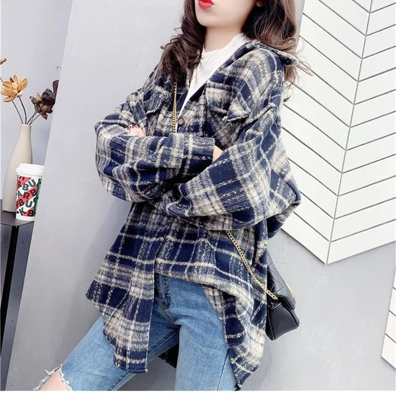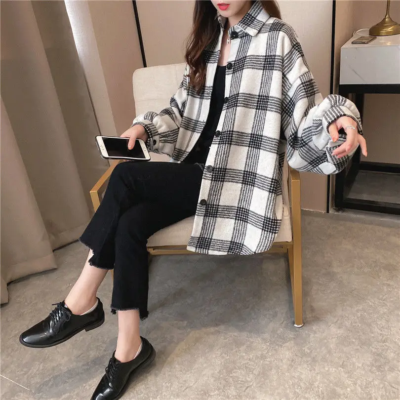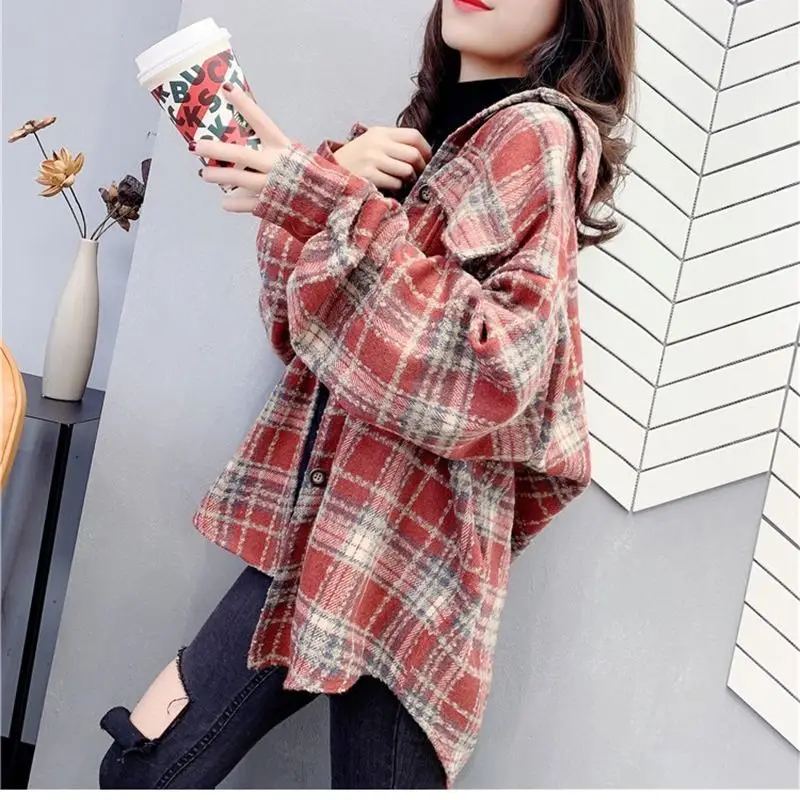 Женская рубашка, Клетчатая Шерстяная Рубашка, Женская Новинка 2021,...