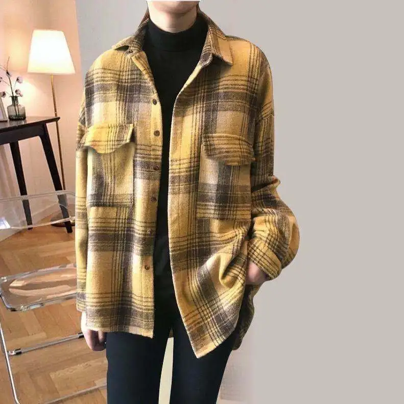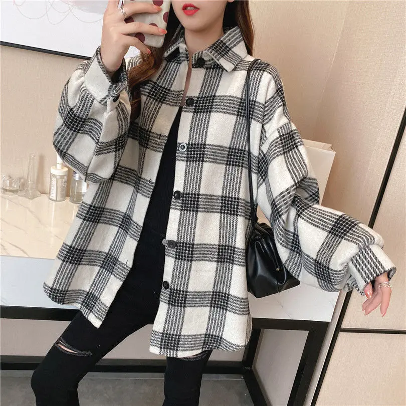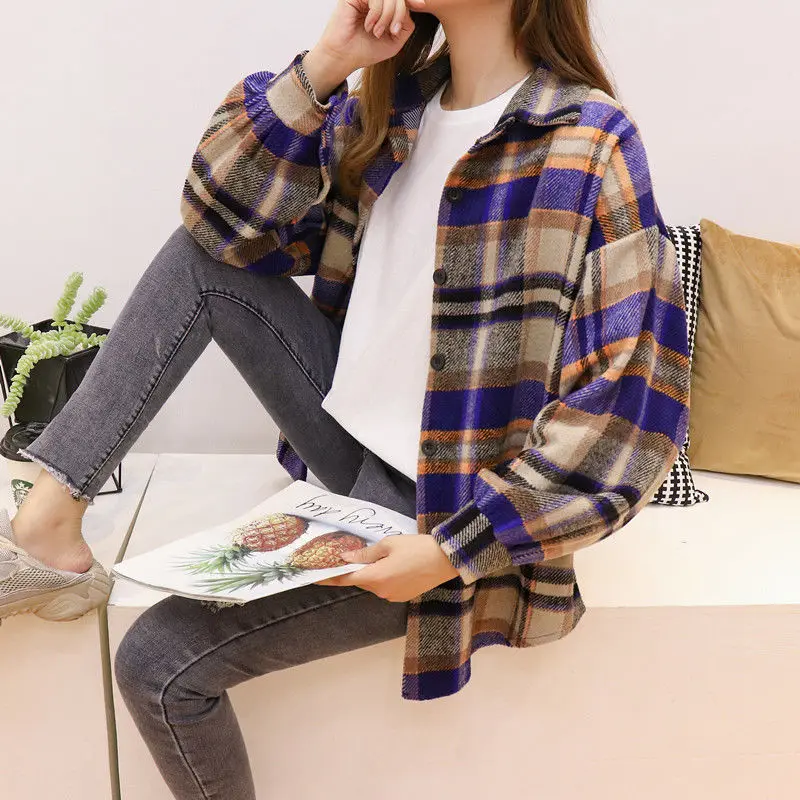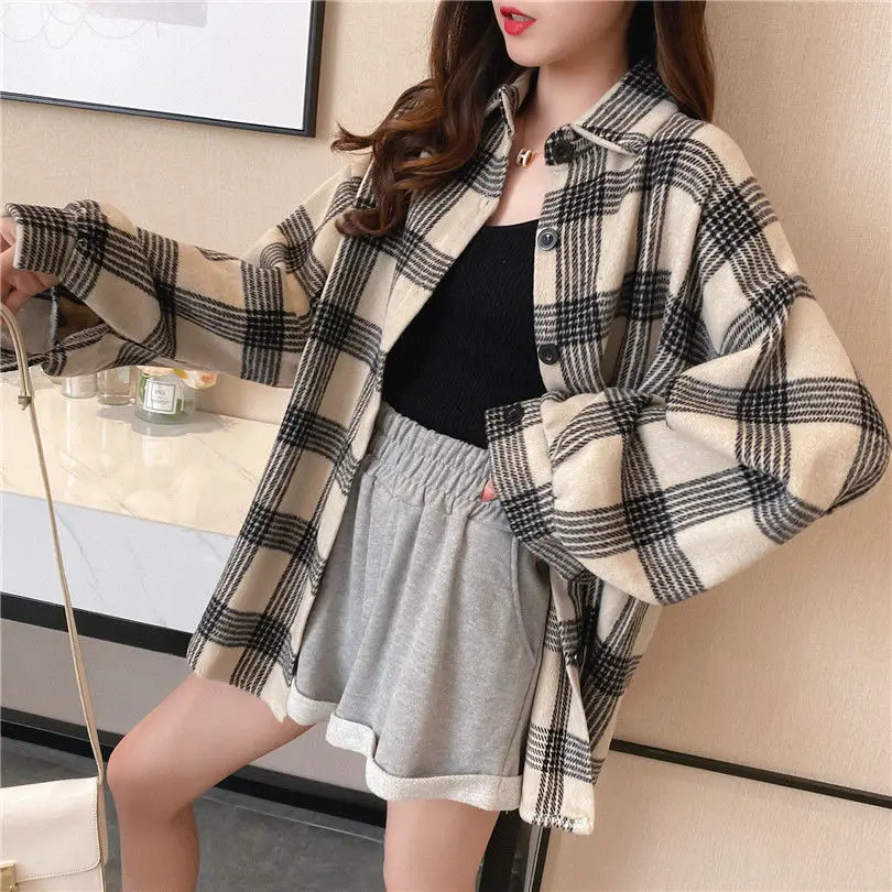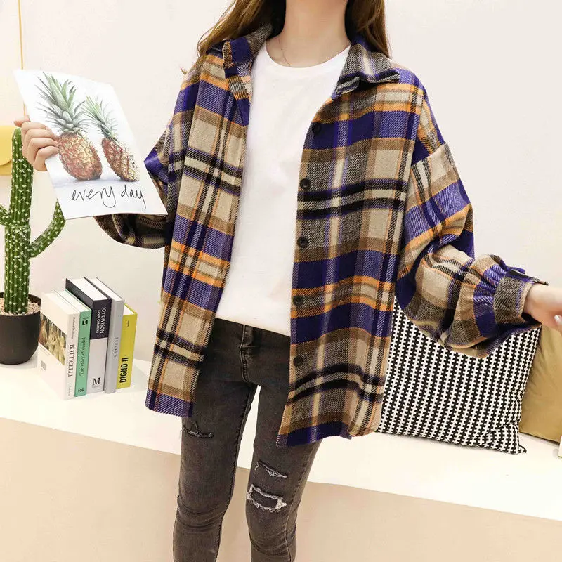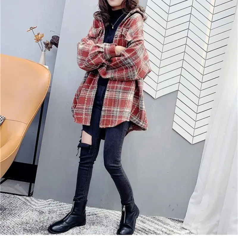 Женская рубашка, Клетчатая Шерстяная Рубашка, Женская Новинка 2021,...