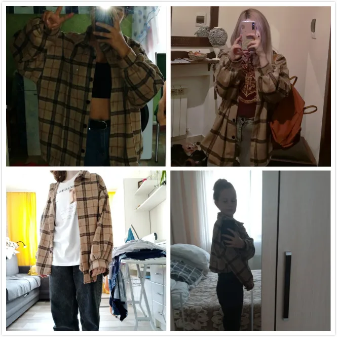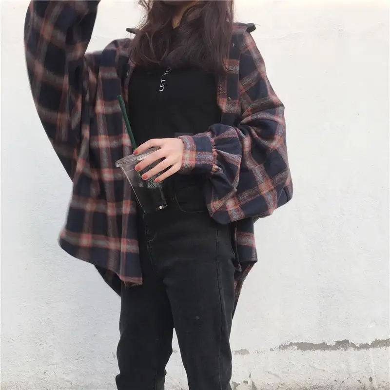 Женская Весенняя уличная блузка Рубашки винтажная клетчатая фланеле...