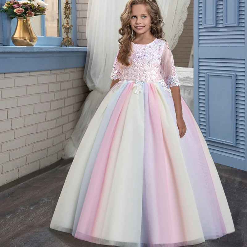 Длинное цветочное освещение 2022 для девочек, свадебное платье для вечеринки 10, 12 лет, детские платья